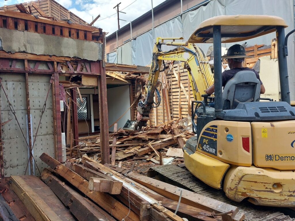 重機で少しずつ、丁寧に構造を崩していきます。 柱の向き、壁の繋がり、重心のバランス。 ただ壊すだけじゃなく、考えながら進めるのがプロの仕事。 現場は今日も、集中と連携で動いています。