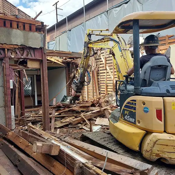 当社の解体チームです。コミュニケーションを欠かしません。